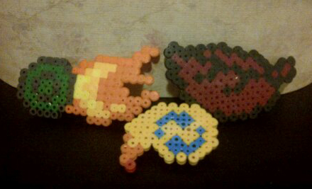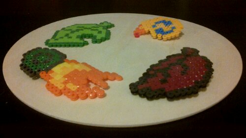 I ended up creating two of my own designs for this project, which made me very excited. The ones that I created were for two of Amaterasu’s weapons from Okami, a game that came out for the PS2 and later the Wii. The others, Mario’s Super Leaf and the Animal Crossing Leaf, I found versions of on pinterest. I tweaked their designs to fit my style better. I like perler bead designs that are simple, and do not use too many different colors for the design.