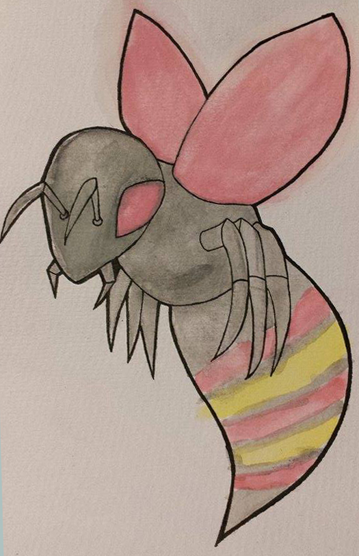 Last Friday I got a watercolor starting kit. Since we have been snowed in for the past couple of days, I finally had the opportunity to try it out. Of course, I ended up doing more fanart of Sentinels of the Multiverse. Well, I tried water coloring their Beebot, one of Unity’s machines. Since it was my first time ever using water colors, I have to say I’m really happy with how it turned out.