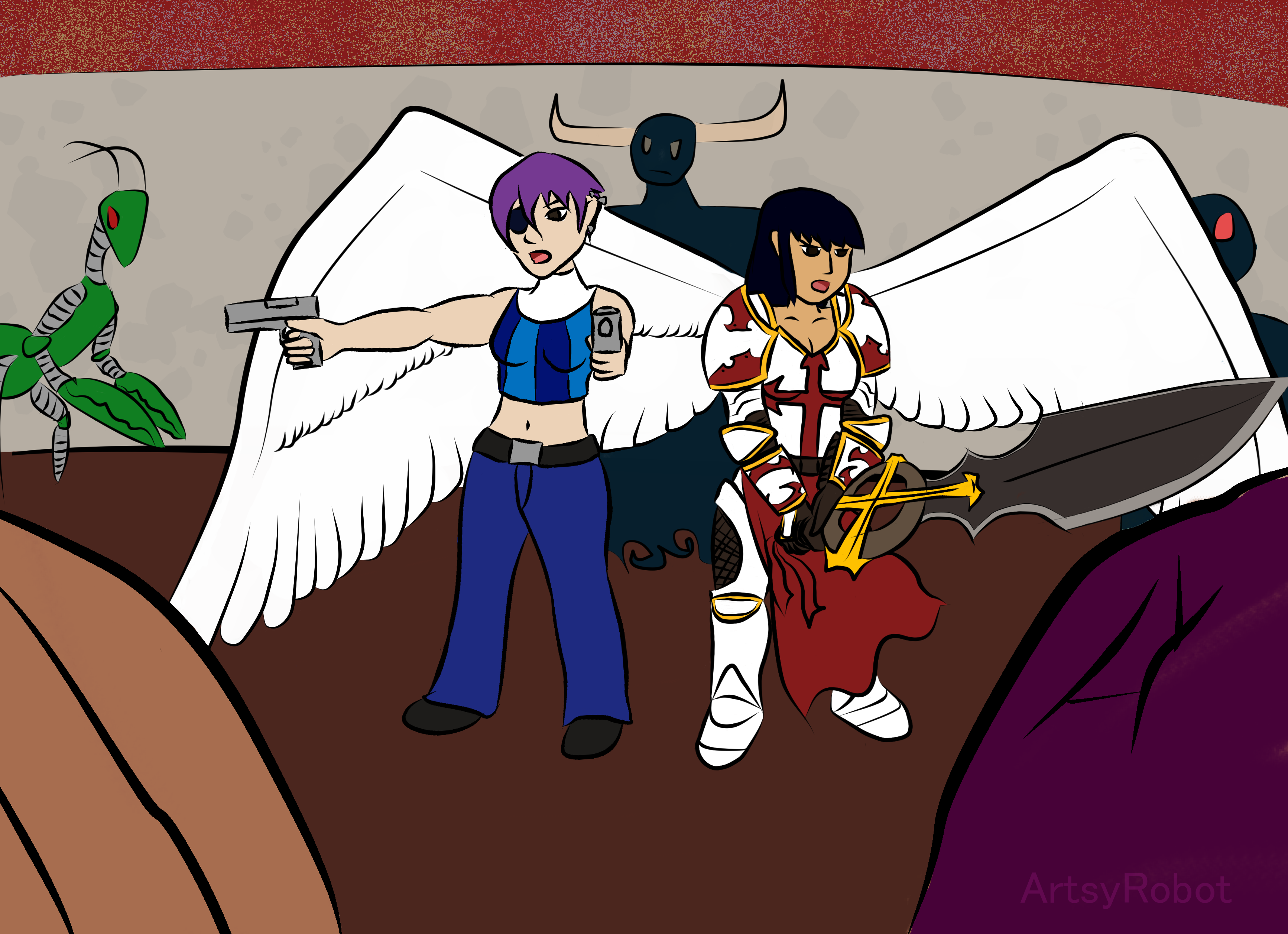 What would you caption this piece with? What do you think the heroes in the center are saying? Comment below or e-mail me at artsyrobotz@gmail.com.