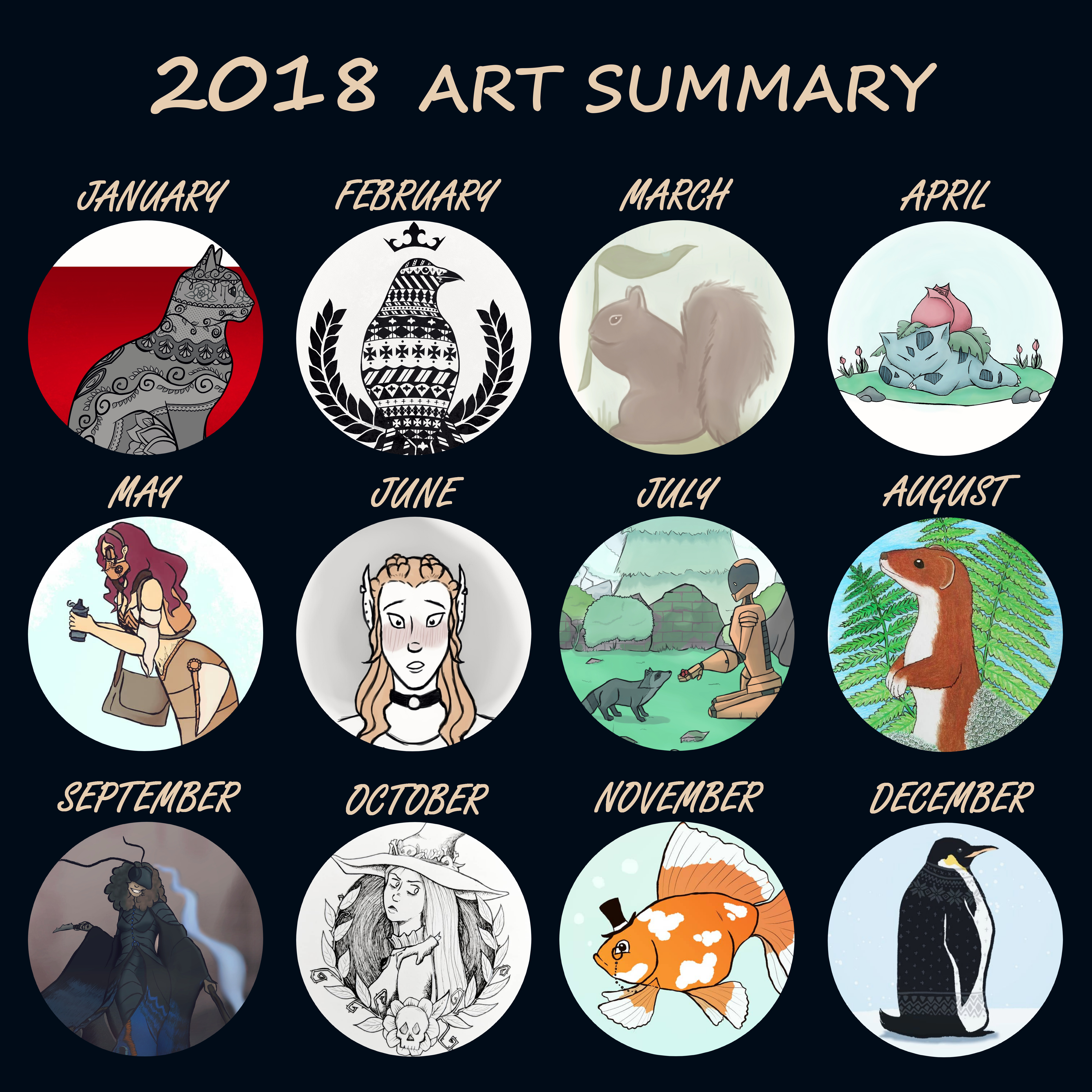 Art summaries are a nice way to see how far I have come, and where I want to go. I think it’s fun to share the highlights from each month from the past year. I guess you can do this with about any project you’re working on, in some way similar to this, though I’ve only ever done it with art…