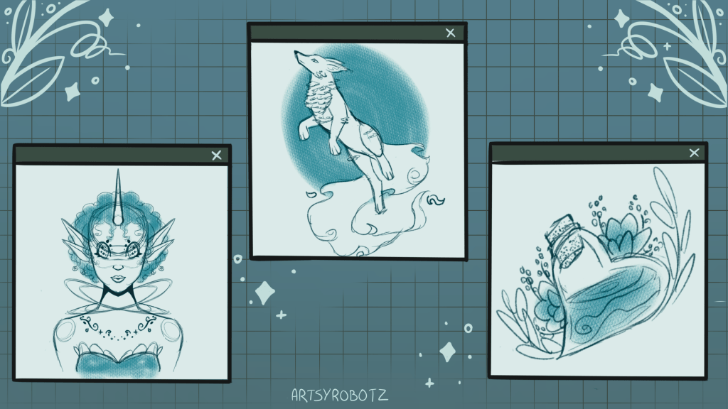 The Matcha Latte tier and up get a sketch from me that is compiled with my other digital sketches and shared in a sketchbook tour at the end of each month. Below are a few from this month’s collection.